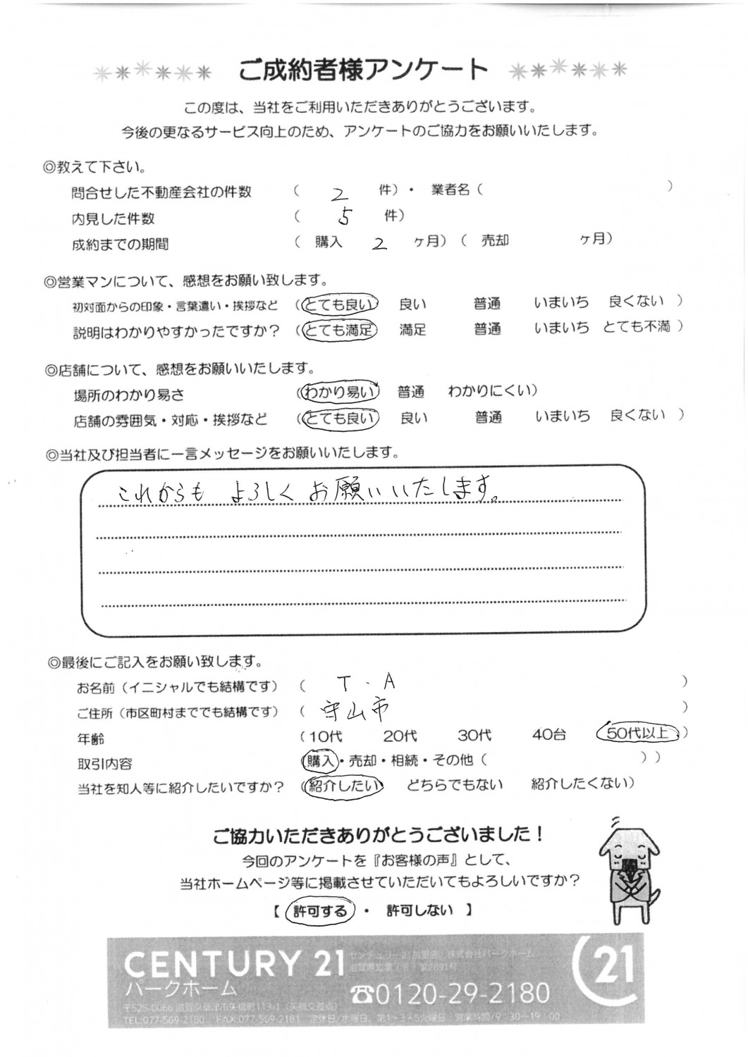お客様の声詳細 兵庫県A様 アンケートを見る これからも宜しくお願いいたします。 このたびは本当にありがとうございました! 無事にご購入が完了し、良いご縁に恵まれたことを嬉しく思います。 今後リフォームやお家のことでお困りのことがあれば、いつでも頼ってくださいね。 これからもよろしくお願いいたします。 担当 / 下井 真人