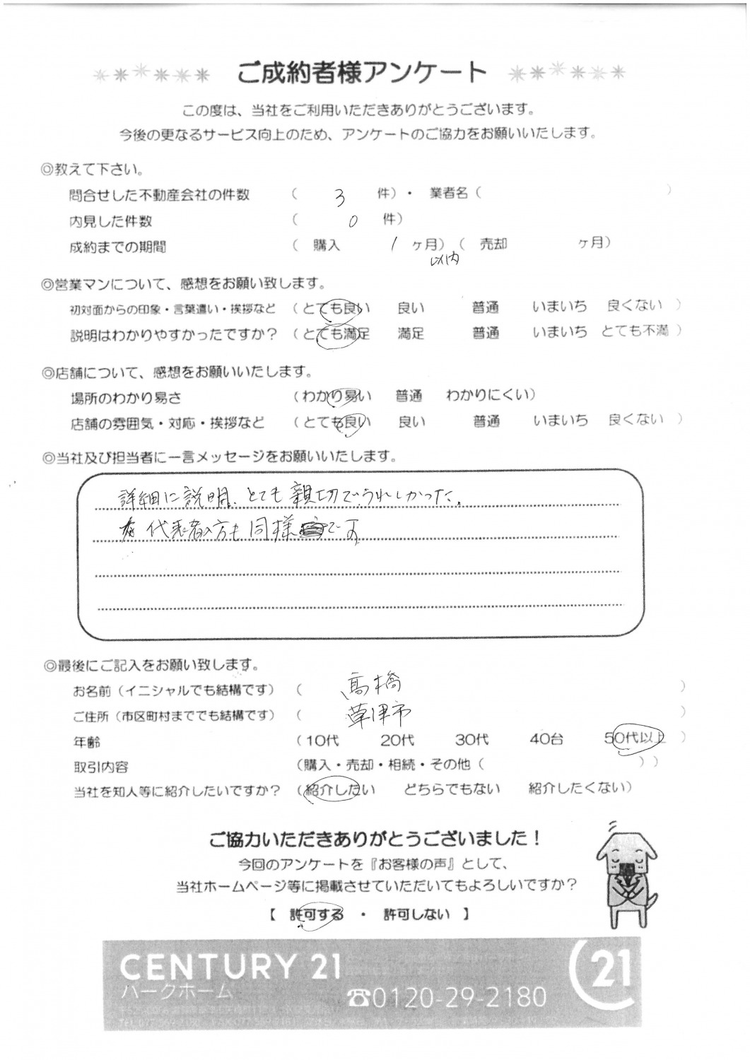 私のご説明が高橋様のお役に立てたとのこと、また「嬉しかった」とのお言葉を拝見し、私自身も大変感激しております。