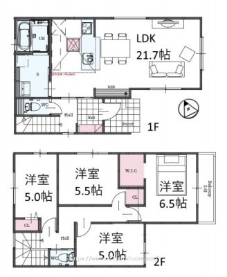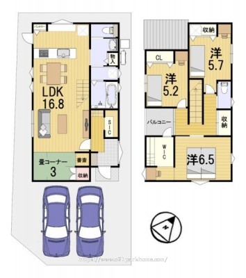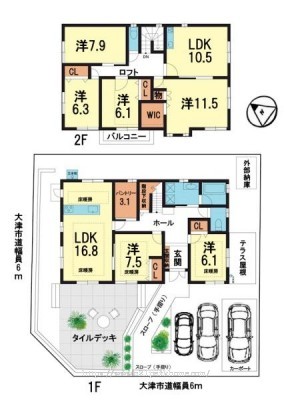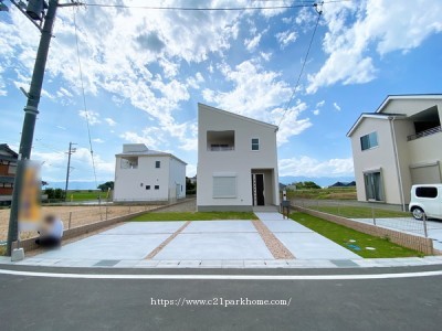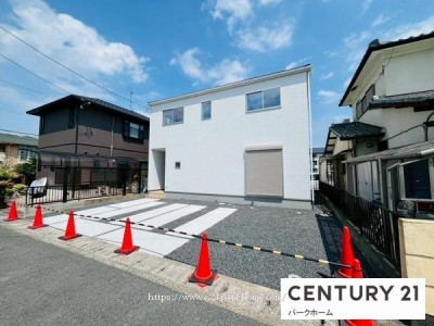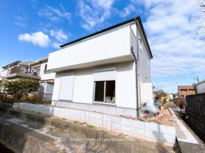 ■総施工面積:114.27m2(ポーチ1.65m2・ベランダ4.96m2)34.56坪■別途RC造ガレージボックス付:面積:17.72m2■長期優良認定住宅・断熱等級5・一次エネルギー消費量等級6・耐震等級3・全室LED照明付・カップボード1800付・食器洗い乾燥機付・オール電化住宅・エコキュート・EVコンセント対応■埋蔵文化財包蔵地