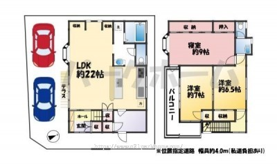 有効宅地面積:約133.79m2(40.47坪)・道路後退:約3.46m2(1.04坪)