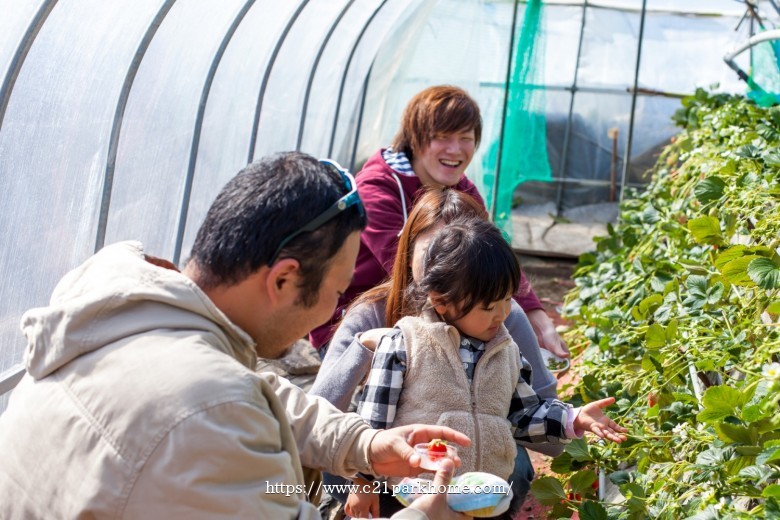 ロックベイガーデンは、いちご狩り(春)やサツマイモ(秋)の収穫が出来る体験農園です。